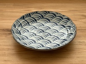 Đĩa gốm Nhật Bản 7 inch Tono Toki – Đĩa tròn họa tiết sóng xanh Seigaiha